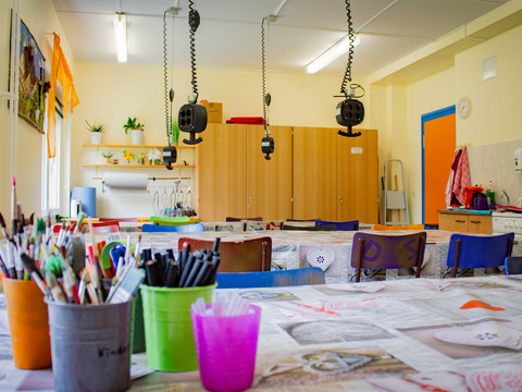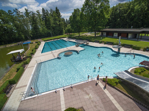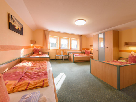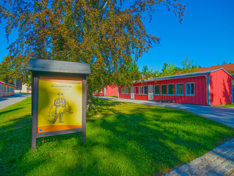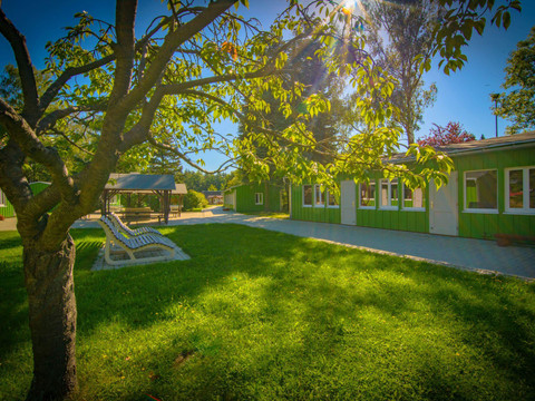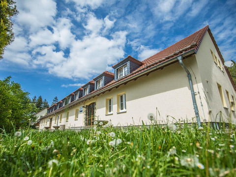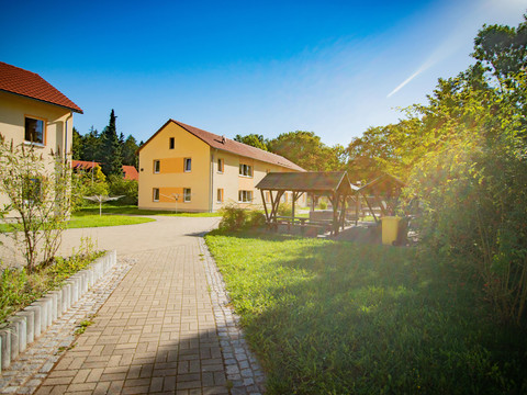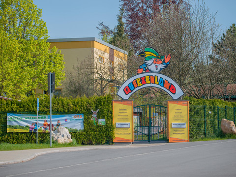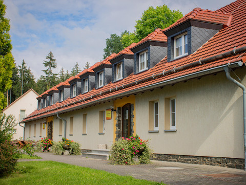 The KiEZ Querxenland is a multifunctional group accommodation on the outskirts of the idyllic small town of Seifhennersdorf. Located in the Zittau Mountains Nature Park, it offers ideal conditions for family vacations, holiday camps, school trips, rehearsal and training camps, as well as seminars. The 8-hectare grounds include six different guest houses: the "family house" and the so-called "Querxen houses," one of which is wheelchair accessible. During the summer months, 24 bungalows are also opened, allowing for a total of 540 guests to find space on the extensive grounds. KiEZ has much to offer for fun and relaxation: in addition to a fitness room, sauna, game center, adventure playground, beach volleyball courts, BMX track, climbing hill, sensory garden, and barbecue areas, there are also several seminar and rehearsal rooms, an experiential educational team course, a synthetic turf field, and a multipurpose sports field. Right next to the Querxenland is the forest and adventure pool "Silberteich."