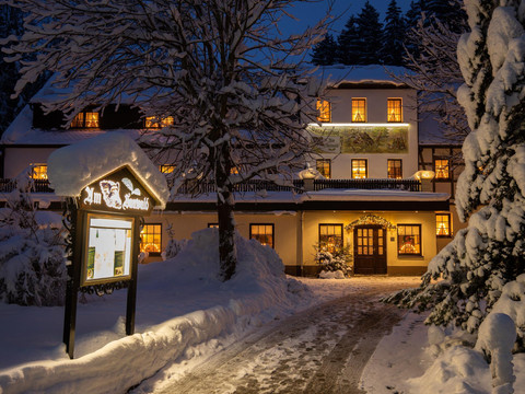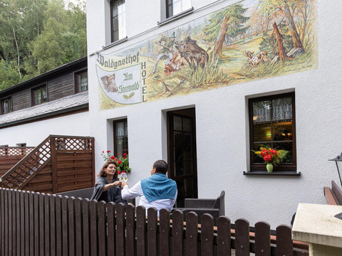 De 20 comfortabele kamers van het huis nodigen uit om te ontspannen en te herstellen te midden van het groen. De liefde van de gastgezin voor de regio Erzgebirge weerspiegelt zich niet alleen in de decoratie en de smaakvolle, authentieke inrichting, maar ook op de menukaart van de Waldgasthof. Naast de klassiekers uit de Erzgebirgse en Boheemse keuken worden seizoensgebonden creaties aangeboden. De Waldgasthof & Hotel "Am Sauwald" is een aanrader voor festiviteiten in familiekring, waar gezelligheid en culinaire verwennerij voorop staan.