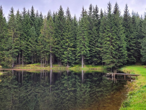 De beklimming van de Fritzschberg begint in Rittersgrün/Zollstraße. Vanaf de bosrand hebben we een prachtig uitzicht terug naar Rittersgrün. De dennenboom domineerde hier ooit, maar is tegenwoordig alleen nog hier en daar te vinden. Zoals zo vaak in het Ertsgebergte is hij vervangen door sparren. We passeren Halbemeile. Halbemeile ligt maar een paar honderd meter van het pad. Er staan een paar afgelegen en pittoreske huizen aan de Duitse kant. Aan de Boheemse kant ligt Rozhrani (Halbmeil), volledig verlaten. De voorzichtige wandelaar geniet al snel van de Himmelswiese, een paradijs voor inheemse kruiden en lage bergbloemen. Als je de markeringen van de bergkam volgt langs de grens en in ontspannen stilte langs de vijverbiotoop, opent het bos zich uiteindelijk bij het Pachthaus en biedt uitzicht op de stad, die wordt gekenmerkt door mijnbouw. Je hebt het treinstation van Johanngeorgenstadt al bereikt met zijn grensoverschrijdende treindienst naar Karlovy Vary. Johanngeorgenstadt staat ook bekend als de "stad van de kaarsenboog". Hier vind je de grootste vrijstaande kaarsenboog ter wereld. Het is een reus: 25 meter breed en 14,5 meter hoog met kaarsen. Hij bestaat uit 700 ton gewapend beton en 15 ton roestvrij staal. Er is één klein nadeel: De kaarsenboog brandt alleen in de winter. Omdat we vandaag maar 10 kilometer hoeven af te leggen, hebben we nog genoeg tijd om de Glöckl mijn en de Pferdegöpel te bezoeken. Beide zijn absoluut de moeite waard!