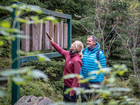 Op sommige wandeldagen kan het begin van de bergrug enigszins variëren afhankelijk van de accommodatie, zoals het geval is in Johanngeorgenstadt. De gastheren geven altijd tips over de beste toegangsroute. We wandelen langs de jeugdherberg, bereiken de Lehmer Grund en na het passeren van de skischansfaciliteiten op de top, bereiken we al snel de graatroute. Dit is een van de meest sneeuwzekere routes in het Duitse middelgebergte. Eenmaal aangekomen in Steinbach volgen we de prachtige bosweg met zijn vele wortels. Hier kun je tijd en ruimte echt vergeten. Pas als we de weg bereiken, realiseren we ons dat we weer moeten opletten. Het pad brengt ons naar de Sauschwemme en dan begint de uitdagende, rechte klim naar links, eerst naar de parkeerplaats en dan via de oorspronkelijke Natur-Aktiv-Garten naar de Auersberg (1.018 meter) met een bergherberg en fantastische uitzichten als beloning. Hier werd in 1861 de eerste uitkijktoren in het Ertsgebergte in gebruik genomen. De afdaling brengt ons de volgende 2,5 kilometer over de Schlangenweg naar de voormalige hamermolengemeente Wildenthal, bijna 300 meter lager. Wildenthal ligt in het dal van de "Große Bockau" en wordt beschouwd als een van de oudste zomerresorts in het Ertsgebergte. Het was ooit een plaats waar veel kuurgasten uit Karlovy Vary doorheen reisden, waaronder Goethe. Tegen de tijd dat we onze etappebestemming Weitersglashütte bereiken, kunnen er, ondanks het zomerresort, nog enkele zweetdruppels op ons voorhoofd verschijnen. Maar als bij toverslag komen we goedgemutst aan op de top - we zitten duidelijk in de wandelflow.