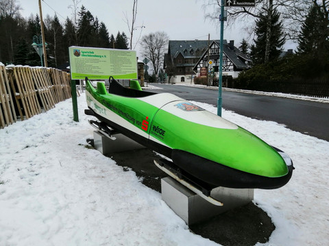 You start the hike at the car park in Oberbärenburg. From there, head first left towards the town center. Not far from the car park, a green bobsled from the Oberbärenburg sports club draws attention. Then you walk a few meters further to the spa square and turn left onto Langer Weg. This is also where the nature trail begins, which leads through the forest. You continue along Langer Weg. After about 2.5 km, turn left towards Tellkoppe and continue following the signs.