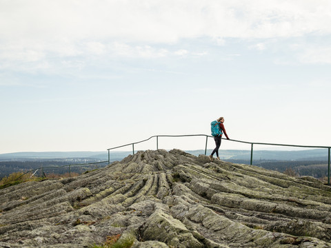Langs de hut "Lustiger Hans" gaan we het bos in over de postweg, en marcheren dan steil bergafwaarts naar Schmalzgrube. Het station Schmalzgrube is het bedieningscentrum van de Pressnitztalbahn. De museumspoorweg met zijn stoomlocomotieven en historische smalspoorwagens is vandaag de dag de drijvende kracht achter het toerisme in het Pressnitztal. Het duurt minder dan 20 minuten om met de trein van hier naar Jöhstadt te komen. Het duurt minstens twee keer zo lang om langs het Blackwater te lopen. Langs de Loreley-rots en Schlössel bereiken we het station van Jöhstadt. Bergopwaarts, steeds langs de rand van het bos, wandelen we met een fantastisch panoramisch uitzicht. Onderweg vinden we steeds grensstenen met de letters D voor Duitsland en C voor Česká republika. Op de top van de Oude Zoutweg zien we in de verte de Bärenstein al liggen. Langs de zigeunerrots bereiken we de herberg Brettmühle. Hier moet je zeker even pauzeren. We gaan verder langs de koele Pöhlbach naar de avonturenherberg Fichtenhäusel met softijs. De Bärenstein komt dichterbij. Nogmaals moeten we de "Berggang" nemen en dan zijn we op de top van de legendarische Bärenstein.